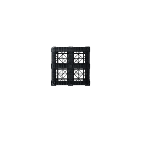 This heavy duty ISO plastic pallet is designed with rectangular blocks for optimal use with heavy loads and maximized deck space. Its open deck allows for efficient load ventilation. Optimized for transport in ISO freight, this durable solution is a reusable pallet made from recycled, 100% recyclable plastic. Customization includes RFID/IoT options, specific colors, and individual labeling.